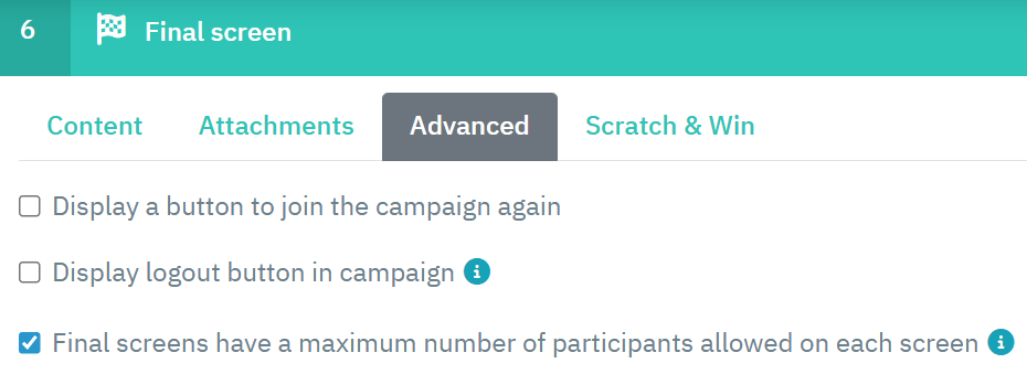 Assign the final screen randomly among the available ones. When this option is enabled, the platform will show a random final page once the user finishes the campaign.
