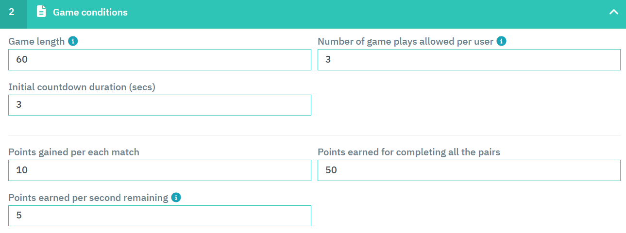 The new field lets you define the number of countdown seconds shown to users before the game starts. This way, you can give players more or less preparation time depending on the dynamics of your promotional campaign.