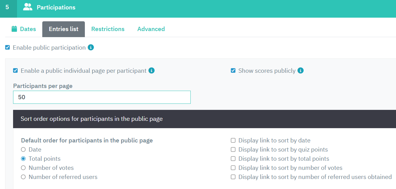 Limit participations: You can allow one participation per user or enable multiple participations.