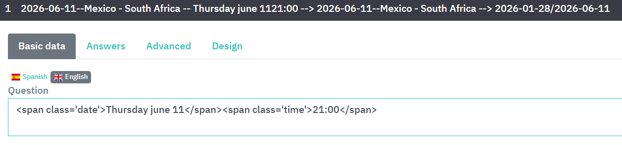 This option is located in the “Advanced” tab of each question, marked as “Visible only during a specific date”, allowing you to control when users can submit their predictions.