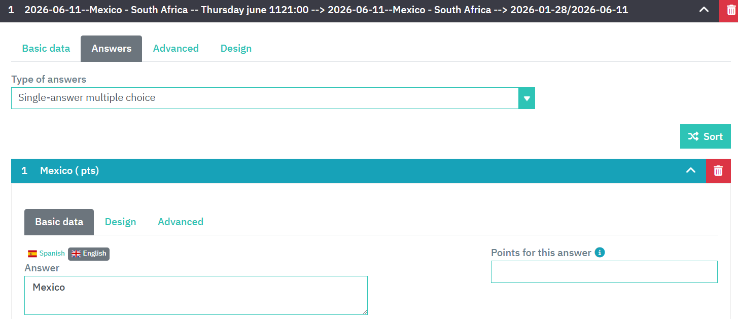 As matches are played and results are known, you can assign points to the correct answers from the campaign settings.