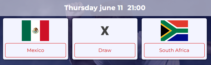 Each match offers three options: Win A, Draw, Win B (1X2), just like in a classic betting pool.