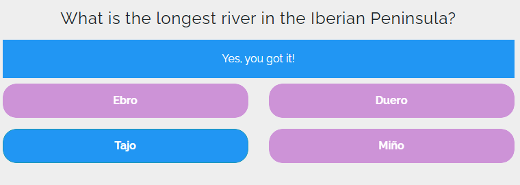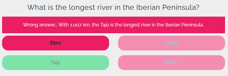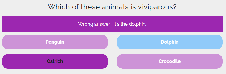 The color of the answer options: the selected option changes color to indicate if it was a correct or incorrect choice.