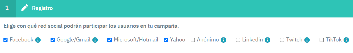 Si tu objetivo no es la captación de leads o no vas a necesitar obtener datos de los usuarios para contactar con ellos, por ejemplo, si realizas un sorteo entre los participantes, puedes deshabilitar las opciones de login o seleccionar las opciones que quieras.