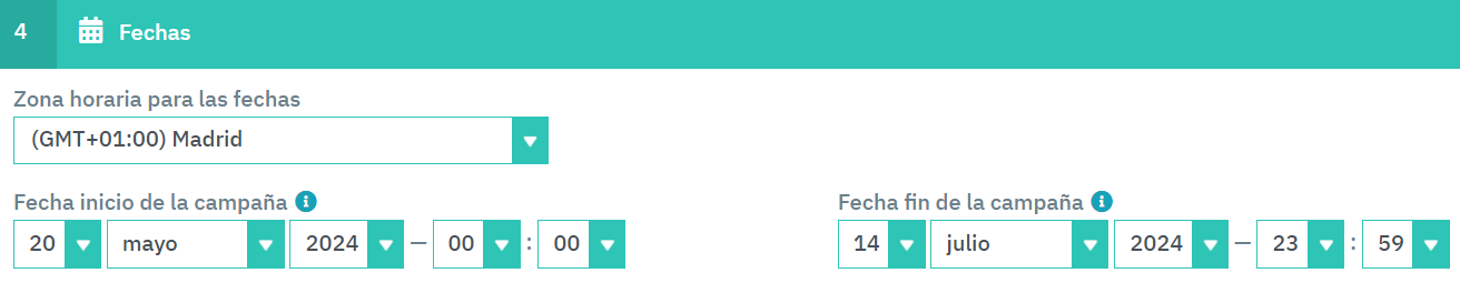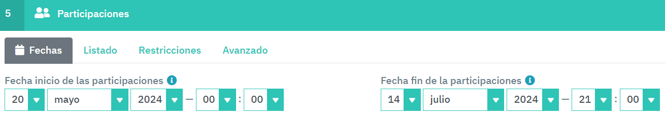 En esta sección puedes modificar las fechas en las que los usuarios podrán participar en la quiniela. Por lo general, las fechas de participación suelen coincidir con las fechas de inicio y fin de la campaña.