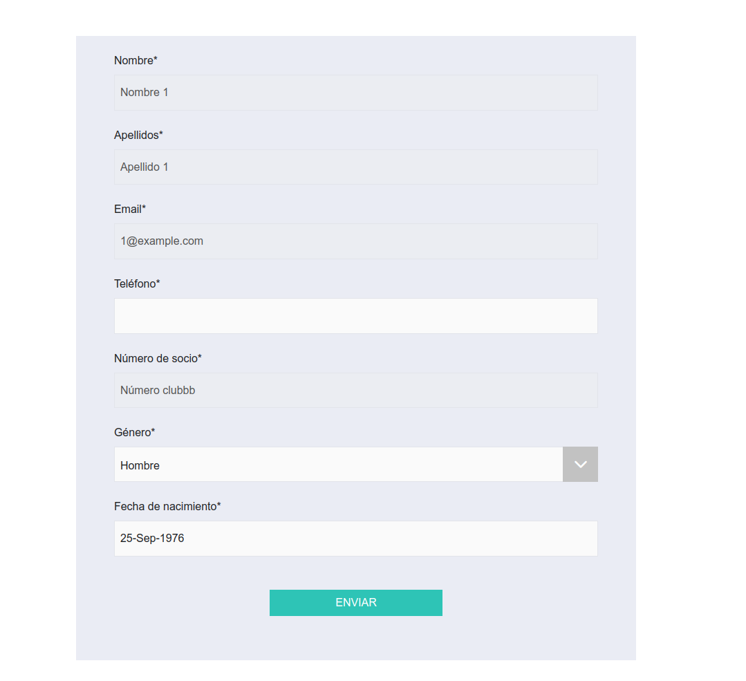 - Los campos personales obtenidos del proveedor de login se mostrarán en el formulario, pero estarán deshabilitados, evitando que el usuario los modifique.