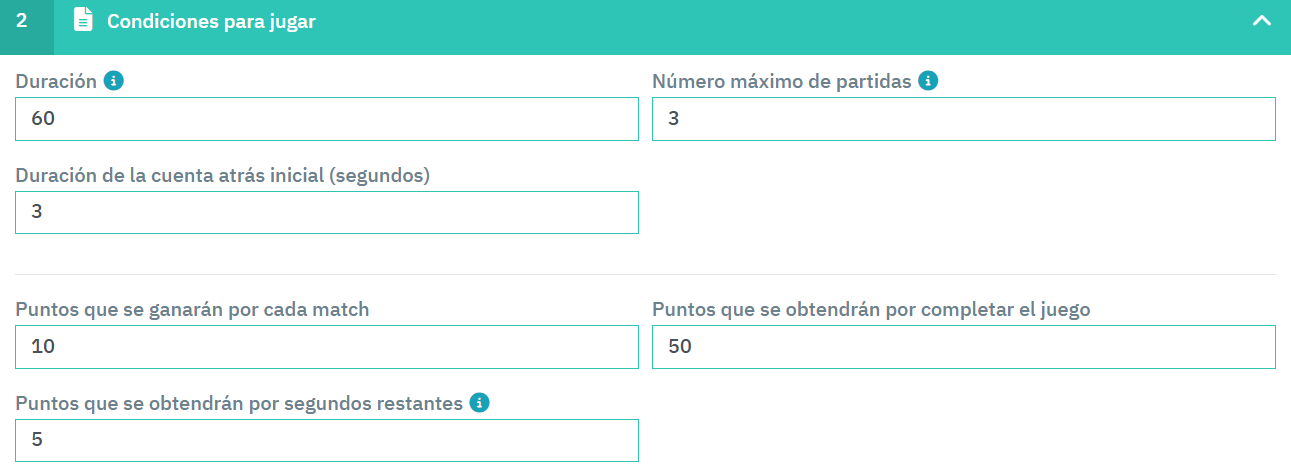 El nuevo campo permite definir los segundos de cuenta atrás que se mostrarán al usuario antes de que comience el juego. De este modo, puedes dar más o menos tiempo de preparación según la dinámica de la acción promocional.