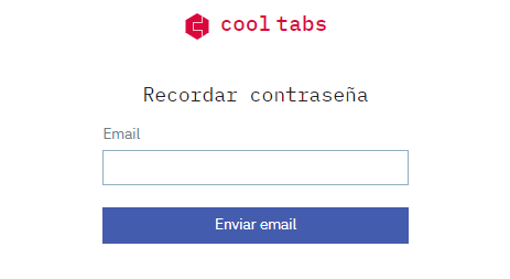 Si lo que quieres es cambiar tu actual contraseña, tendrás que seguir estos mismos pasos, ya que el password se modifica realizando un reseteo del mismo. Así que, cierra sesión en Cool Tabs y pincha en "¿Has olvidado tu contraseña?".