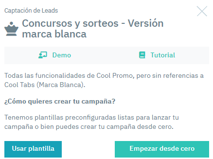 Las aplicaciones Cool Promo y Cool Promo White Label, incluidas en los planes Gold y Diamond, respectivamente, son las que te permiten configurar una campaña de contenido interactivo.